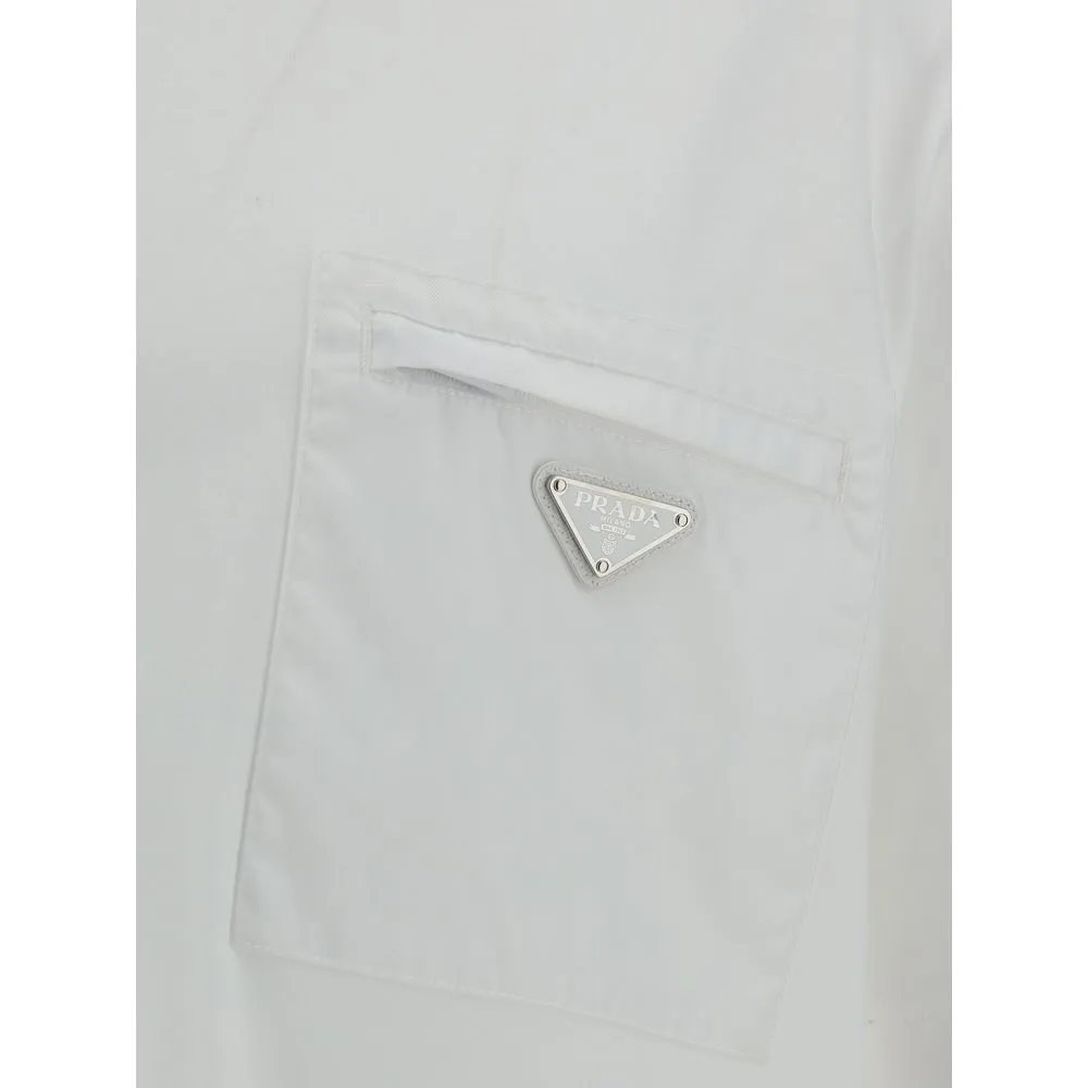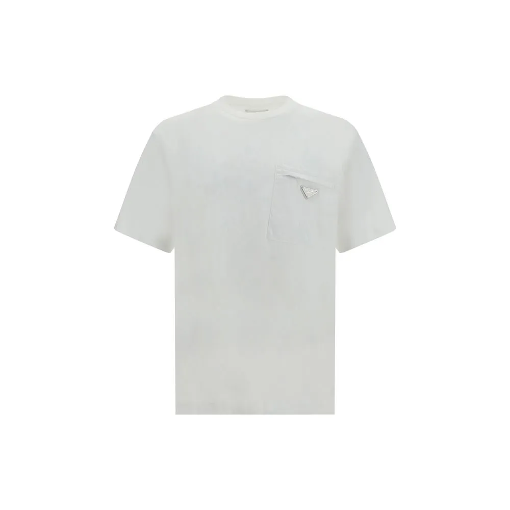Cotton T-Shirt by Prada, ribbed crew neck, large patch pocket on the front, iconic triangular brand signature plaque on the front pocket, regular fit.