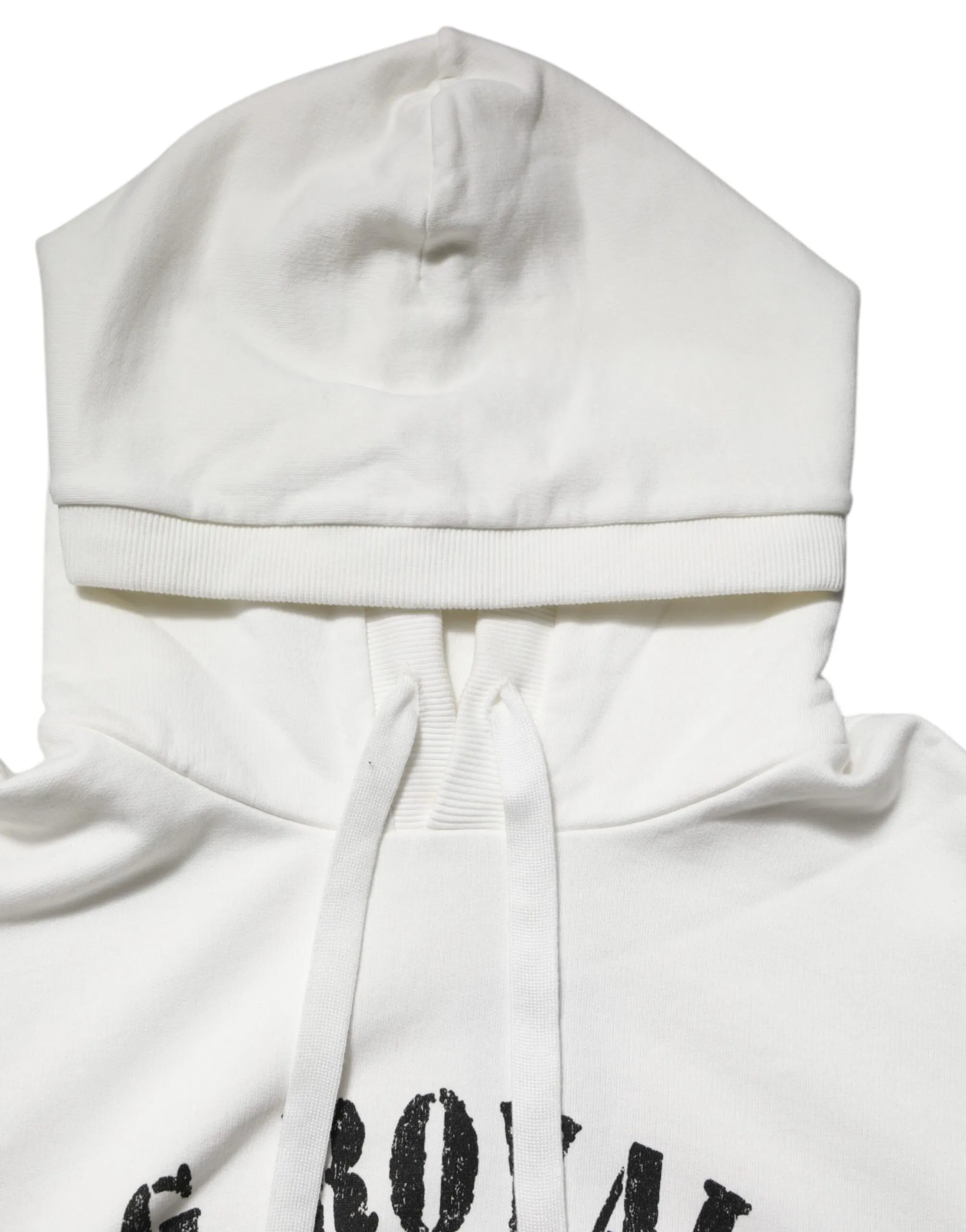 White Cotton DG ROYAL Print Hooded Sweater