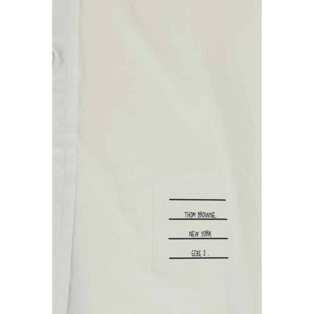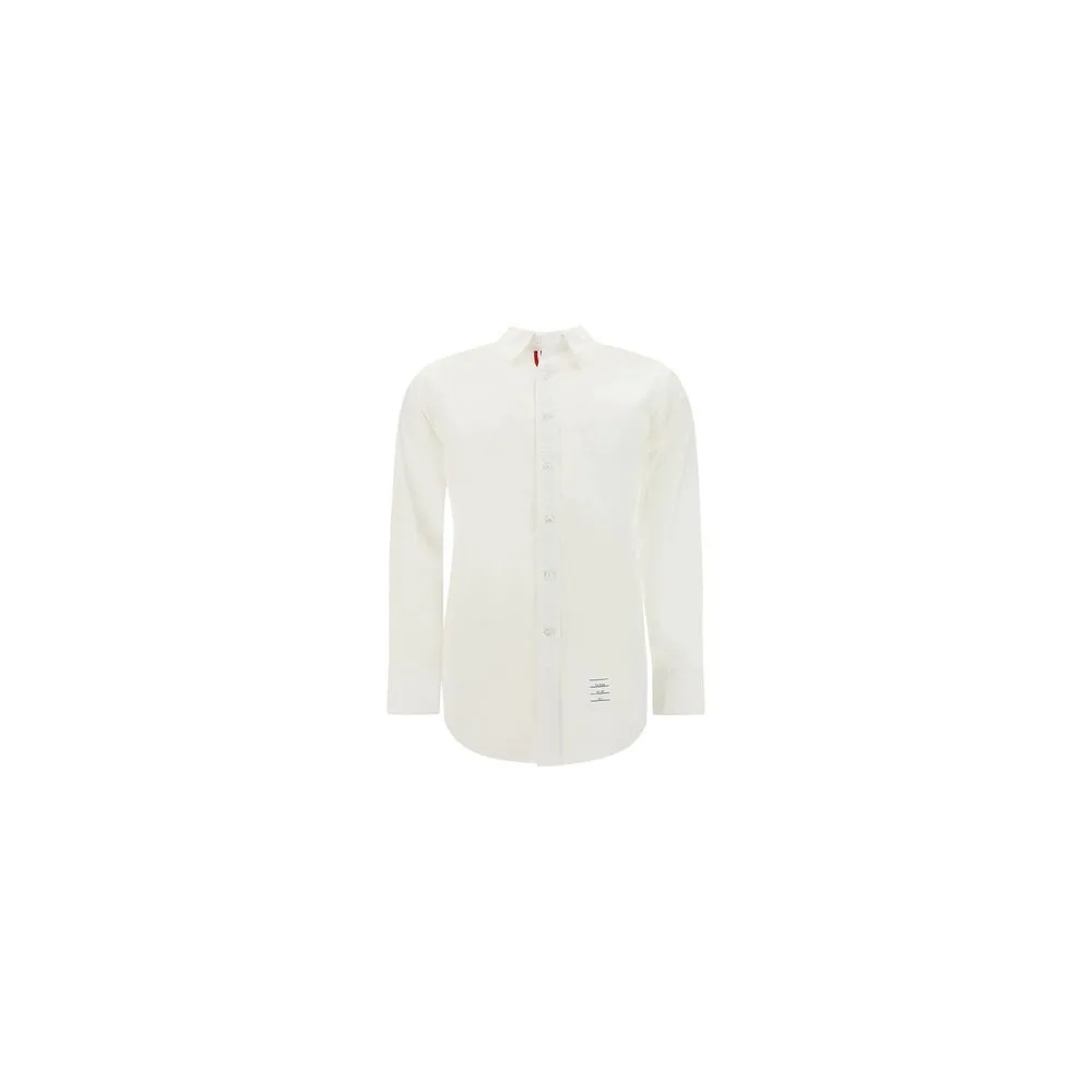Cotton Shirt by Thom Browne, classic collar, front button fastening, contrasting embroidered brand signature patch on front, adjustable button cuffs, regular fit.