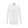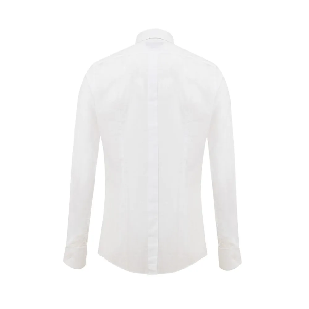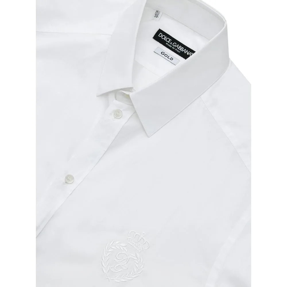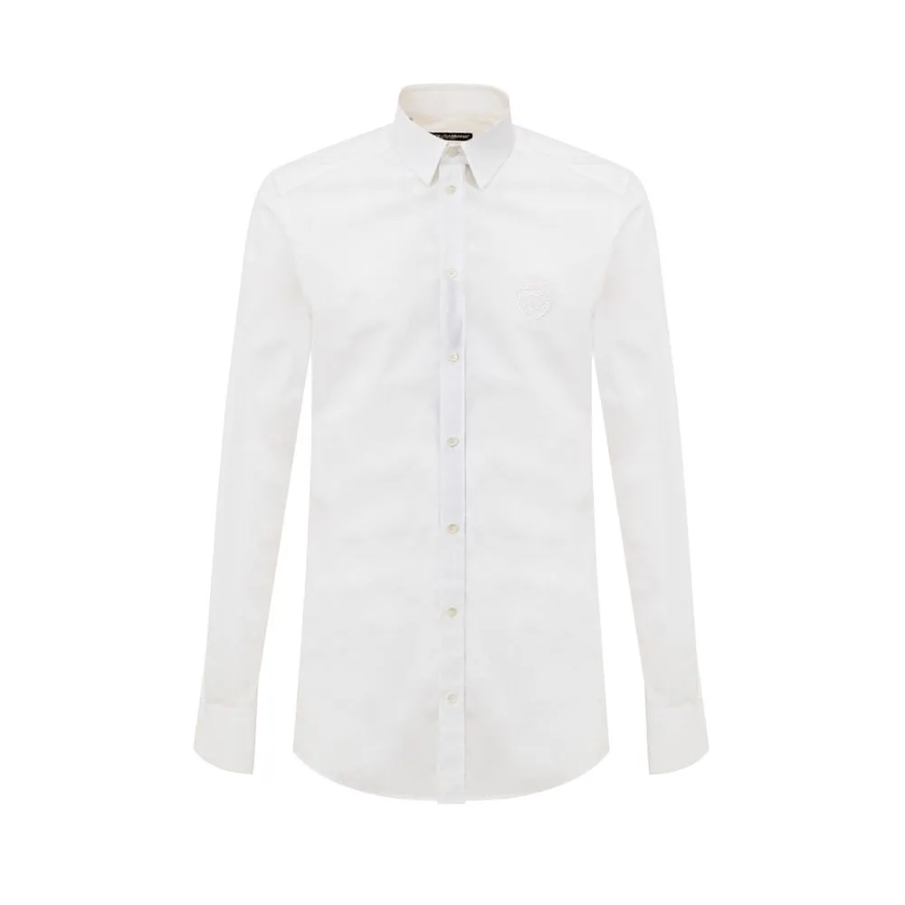White Shirt with Dolce & Gabbana Embroidery Logo. Front button fastening, classic collar, lightweight cotton, tone-on-tone logo embroidery on the side, slim fit.