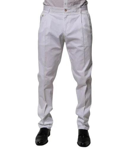 Crafted from premium white cotton, these slim-fit formal trousers feature a clean, tailored silhouette. Designed for a sophisticated look with a modern edge, perfect for formal events, summer occasions, or refined everyday wear.