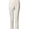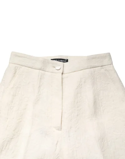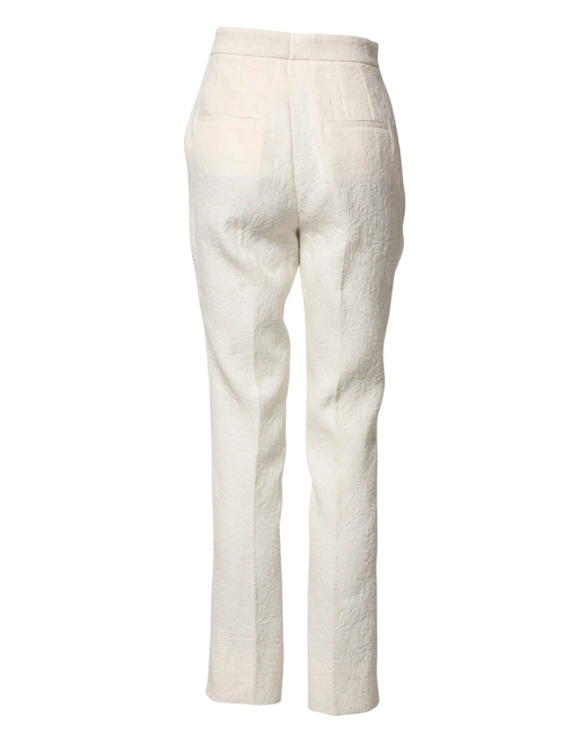 pants feature a delicate floral brocade pattern crafted from luxurious white cotton. Designed with a tailored silhouette, they combine classic sophistication and feminine charm—perfect for polished daytime or formal ensembles.