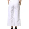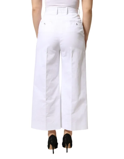 pants feature a crisp white hue with a high-waist, wide-leg cropped silhouette. Expertly tailored for a flattering fit, they embody modern elegance and timeless Italian style—perfect for refined daytime or evening looks.