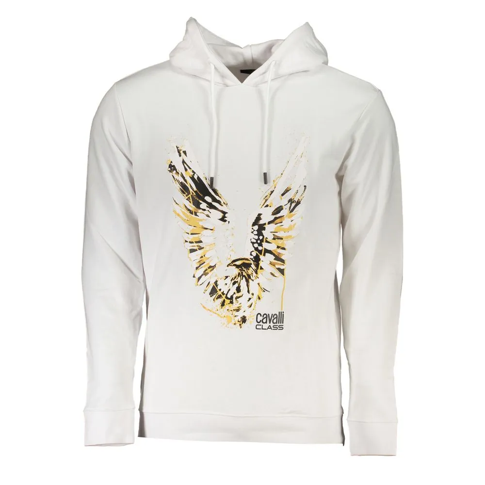Elevate your wardrobe with the quintessential blend of comfort and high-end style from Cavalli Class. This immaculate white sweatshirt is more than just a basic; it’s a statement. Featuring long sleeves and a hood, this brushed piece is adorned with a striking Cavalli Class print and logo, ensuring you stand out effortlessly. Crafted from a harmonious mix of cotton and polyester, it promises to be a cozy and durable addition to your fashion repertoire.
