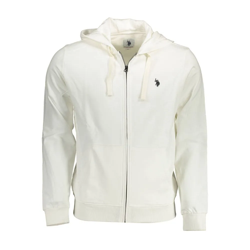 U.S. POLO ASSN. brings a fresh twist to your casual wardrobe with this striking white hooded sweatshirt. Zip up in effortless style and revel in the comfort of a blend of cotton and polyester. With its sharp embroidery and iconic logo, this piece is a testament to timeless fashion with a modern edge. Make this versatile garment a core part of your off-duty look or a sporty addition to your active wear collection.