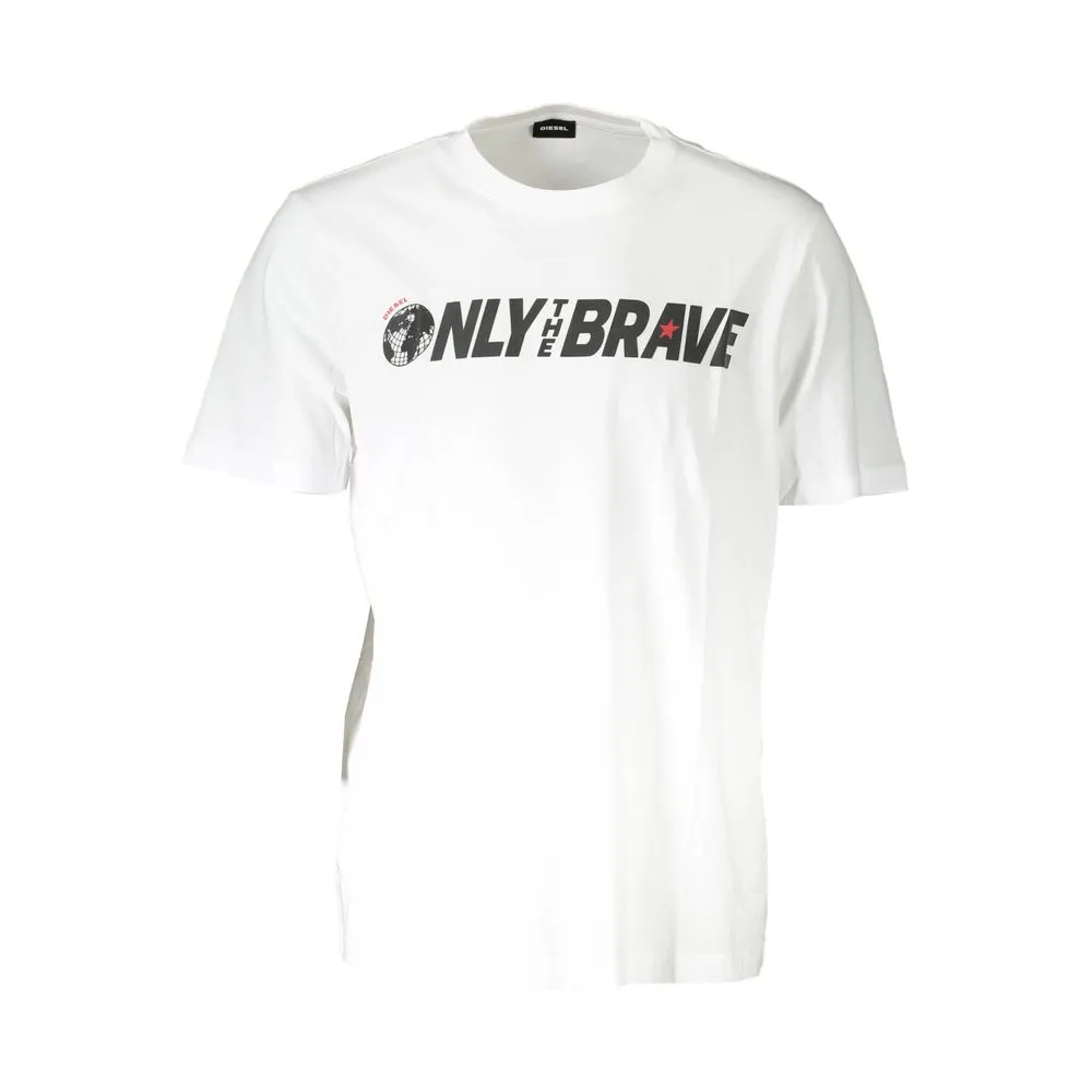 Step into the realm of effortless style with Diesel’s quintessential crew neck tee. Exuding confidence and a touch of rebellion, this crisp white t-shirt is accented with a bold logo application that captures the essence of the brand’s trendsetting ethos. Crafted from premium cotton for unmatched comfort and breathability, it’s a piece that ensures you stand out with understated sophistication. Perfect for versatile styling, let it anchor your casual wardrobe with Diesel’s storied urban edge.