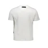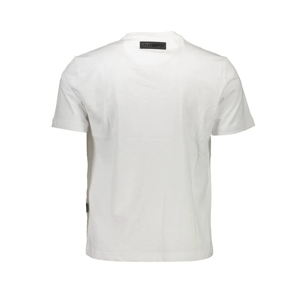 Elevate your casual wardrobe with the striking aesthetics of Plein Sport. This crisp white short-sleeve t-shirt boasts a crew neck design, punctuated with bold contrasting details that command attention. The front showcases an elaborate application meticulously juxtaposed with the iconic Plein Sport logo, creating a statement piece that’s both sporty and stylish. Crafted from premium 100% cotton, it promises comfort and durability, making it an ideal choice for trendsetters who value quality as much as design.