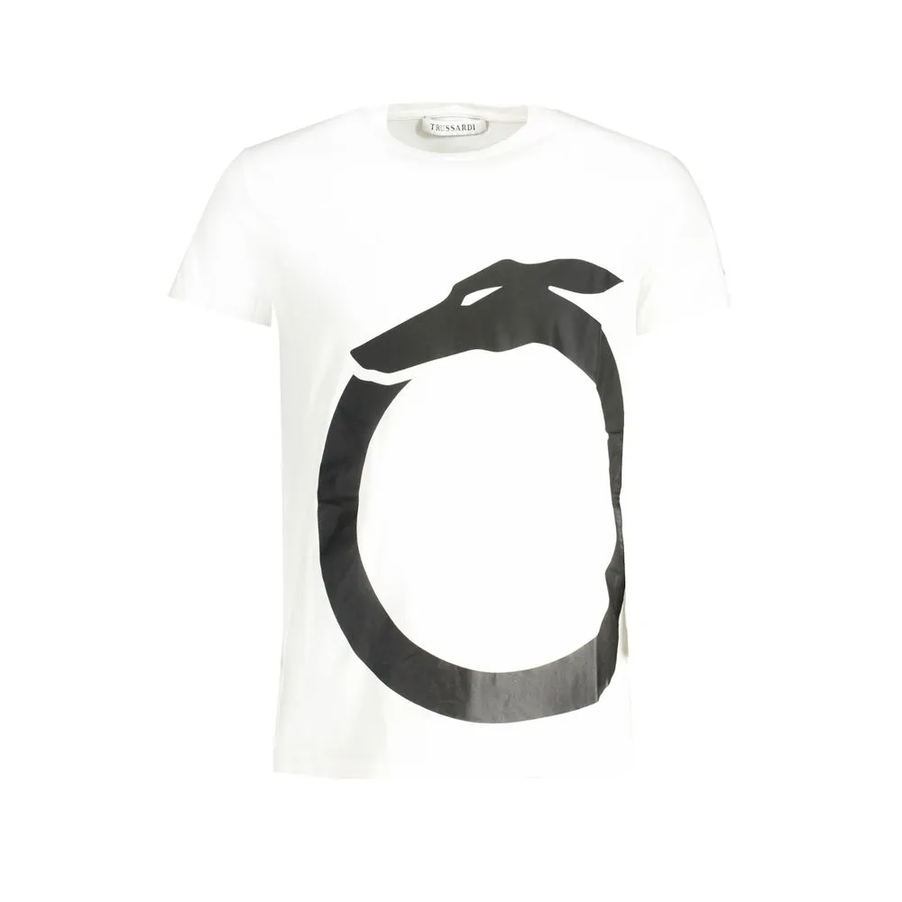 Elevate your casual repertoire with the timeless elegance of TRUSSARDI’s white short-sleeved T-shirt. Crafted with precision, this crew neck top combines comfort and style with its sleek print and iconic logo, making it a versatile addition to any contemporary wardrobe. Perfect for those who appreciate a touch of luxury in their everyday attire.
