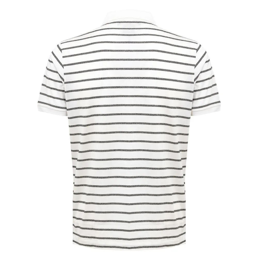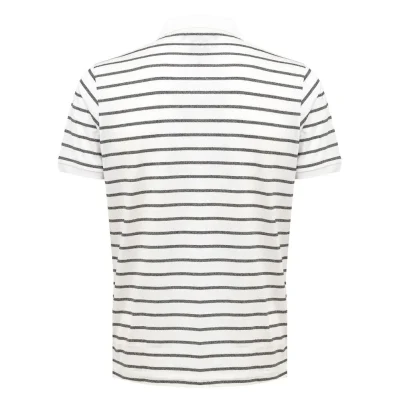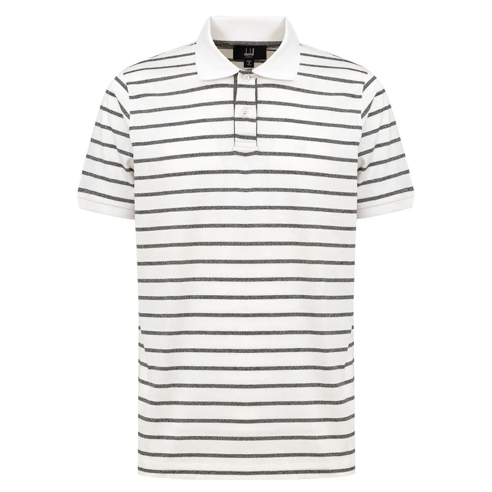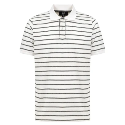Dunhill Cotton Striped Polo. Soft black/white striped cotton, white knitted collar, button fastening, small side vents. Regular fit