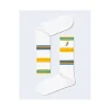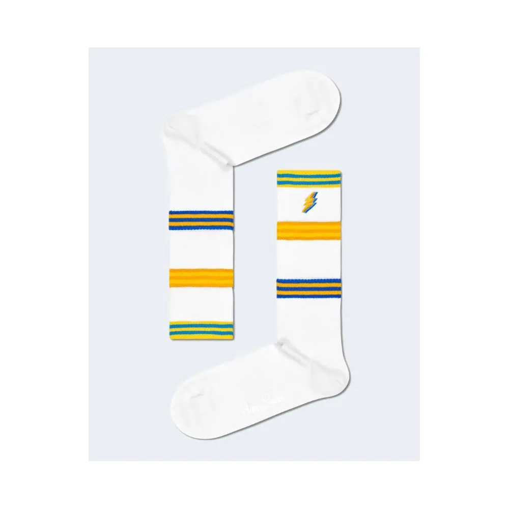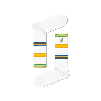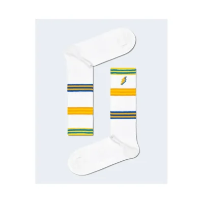 Discover the Happy Socks COLORS CUFF THIN CREW SOCK ATCCF29 women’s socks, perfect for adding a touch of style and vibrancy to your everyday look. Crafted from a high-quality blend of 75% cotton, 23% polyamide, and 2% elastane, these socks ensure comfort, breathability, and a snug fit that adapts perfectly to your foot. The design features a thin ribbed texture with a colorful striped elastic cuff and a small lightning bolt embroidery, adding a unique and modern twist. Ideal for all seasons, they pair effortlessly with both casual and sporty outfits, offering a blend of comfort and personality to elevate any ensemble.