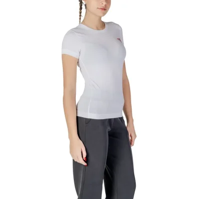 The Guess SS CN MINI TRIANGLE W2YI44 J1314 women’s short-sleeved t-shirt is the perfect choice for those seeking a clean yet distinctive style. Crafted from 95% cotton and 5% elastane/lycra, it offers comfortable wear and gentle stretch that flatters the feminine silhouette. The iconic mini Guess triangle logo embroidered on the chest adds a touch of subtle elegance. With its classic cut and soft fabric, this t-shirt is ideal for both casual occasions and more refined outfits. A versatile must-have for the spring-summer season, it pairs effortlessly with sporty pants or jeans for a timeless look.