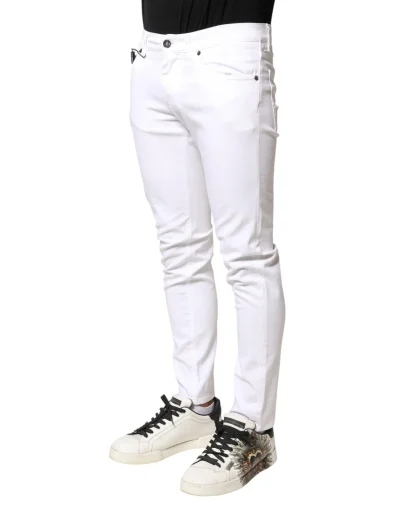 Gorgeous brand new, 100% Authentic Dolce & Gabbana white skinny jeans, crafted from premium cotton with a touch of stretch for comfort and flexibility. Featuring a sleek, modern silhouette, they offer a clean, versatile look perfect for pairing with tees, shirts, or blazers. Ideal for creating polished everyday or chic off-duty outfits.