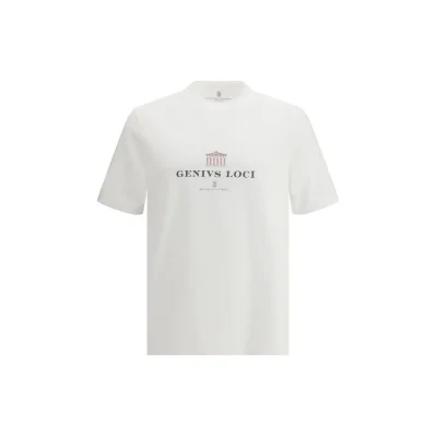 The T-shirt in cotton jersey by Brunello Cucinelli expresses understated refinement through a clean construction that reflects the brand’s meticulous approach. The round neck shapes a neat, balanced line, while the double-stitched hems on sleeves and bottom add discreet precision to the silhouette. The “Genivs loci” inscription introduces a cultured and distinctive touch, turning the garment into a subtle statement of contemporary identity. The regular fit enhances an effortless outline, offering a T-shirt that blends simplicity, elegance and the unmistakable character of Brunello Cucinelli.