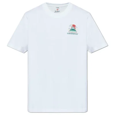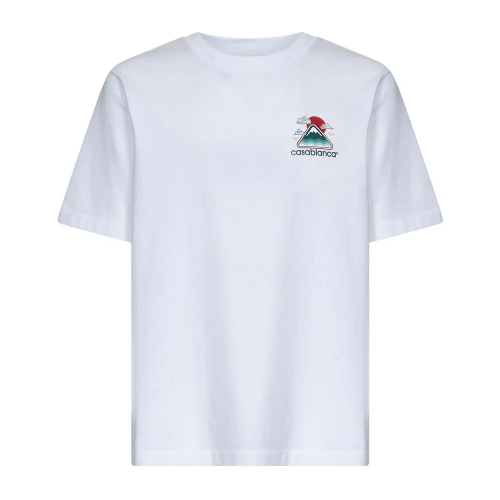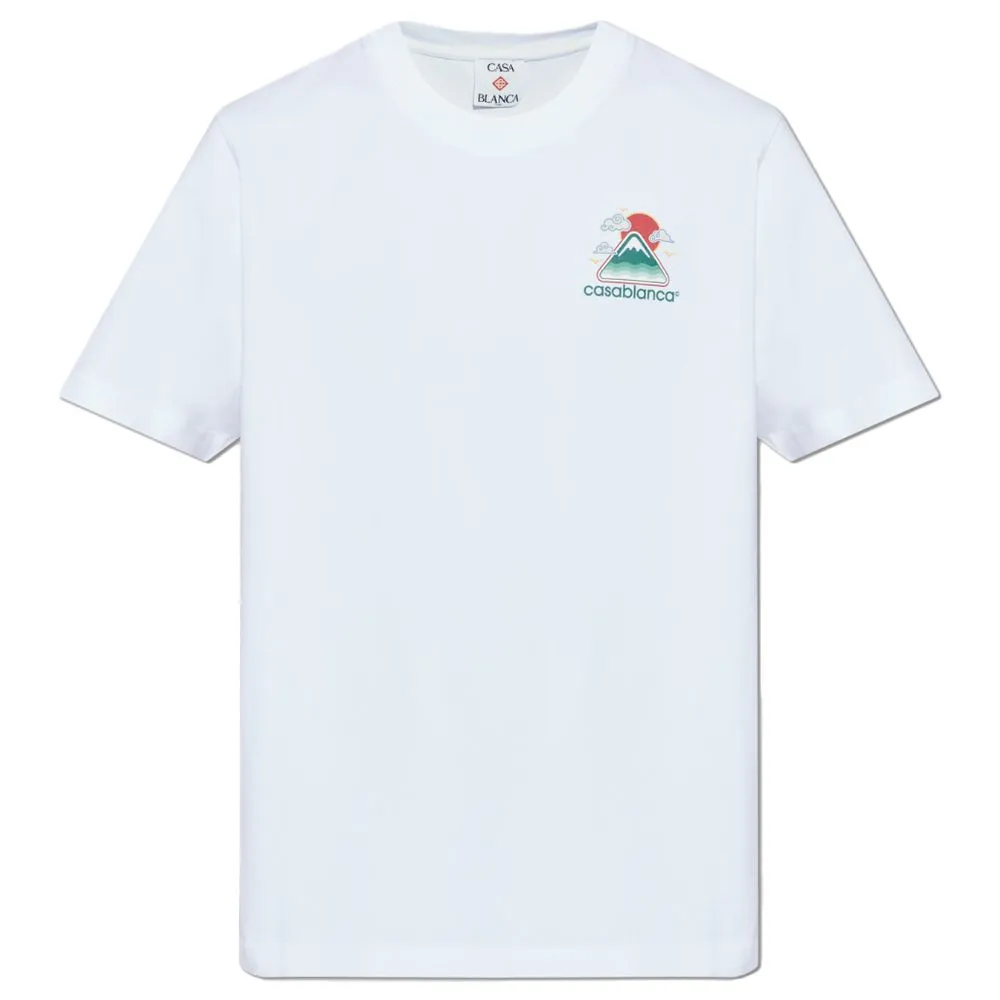 Casablanca, white cotton crew neck T-shirt, mountain logo print on the front and back