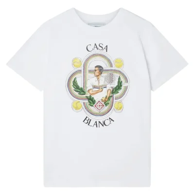 Casablanca, 100% cotton crew-neck t-shirt, tennis club joueur print, white... Read More