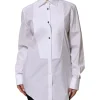White Cotton Tuxedo Bib Long Sleeve Dress Shirt Original price was: $1,009.00.Current price is: $639.00.