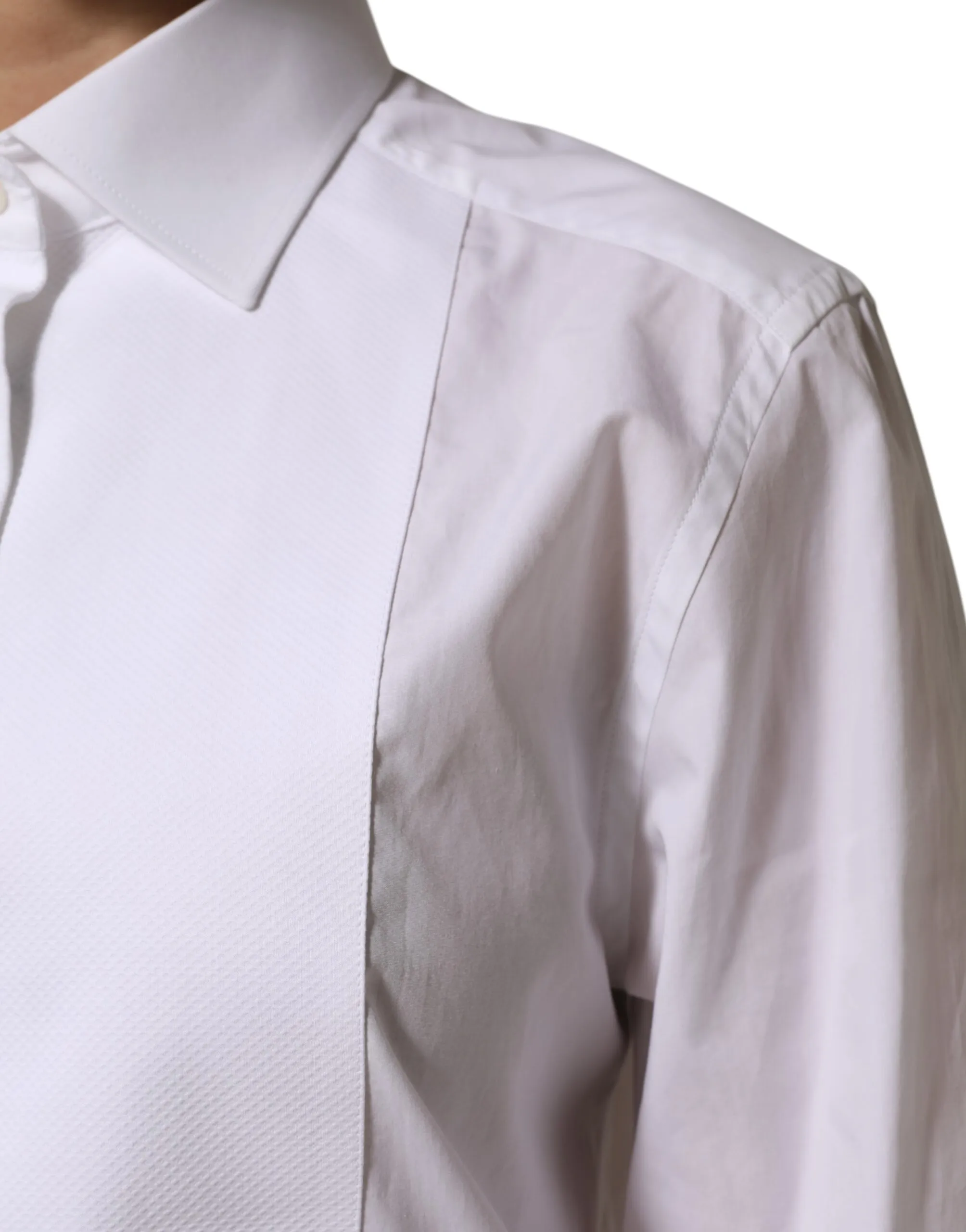 White Cotton Tuxedo Bib Long Sleeve Dress Shirt