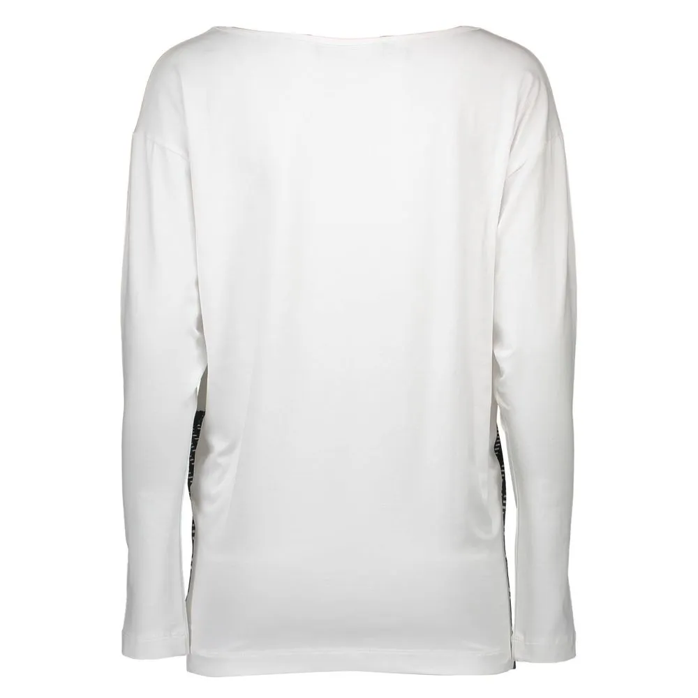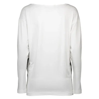 Elevate your essentials with this chic Love Moschino long sleeve t-shirt. Designed with a flattering boat neck and emblazoned with the iconic logo, this top is a blend of comfort and high fashion. The perfect canvas for your statement accessories or a sleek standalone piece for an effortlessly stylish look. Crafted in Turkey from premium cotton with just a touch of elastane for the perfect fit, it’s the white tee that brings a touch of luxury to your everyday wardrobe.