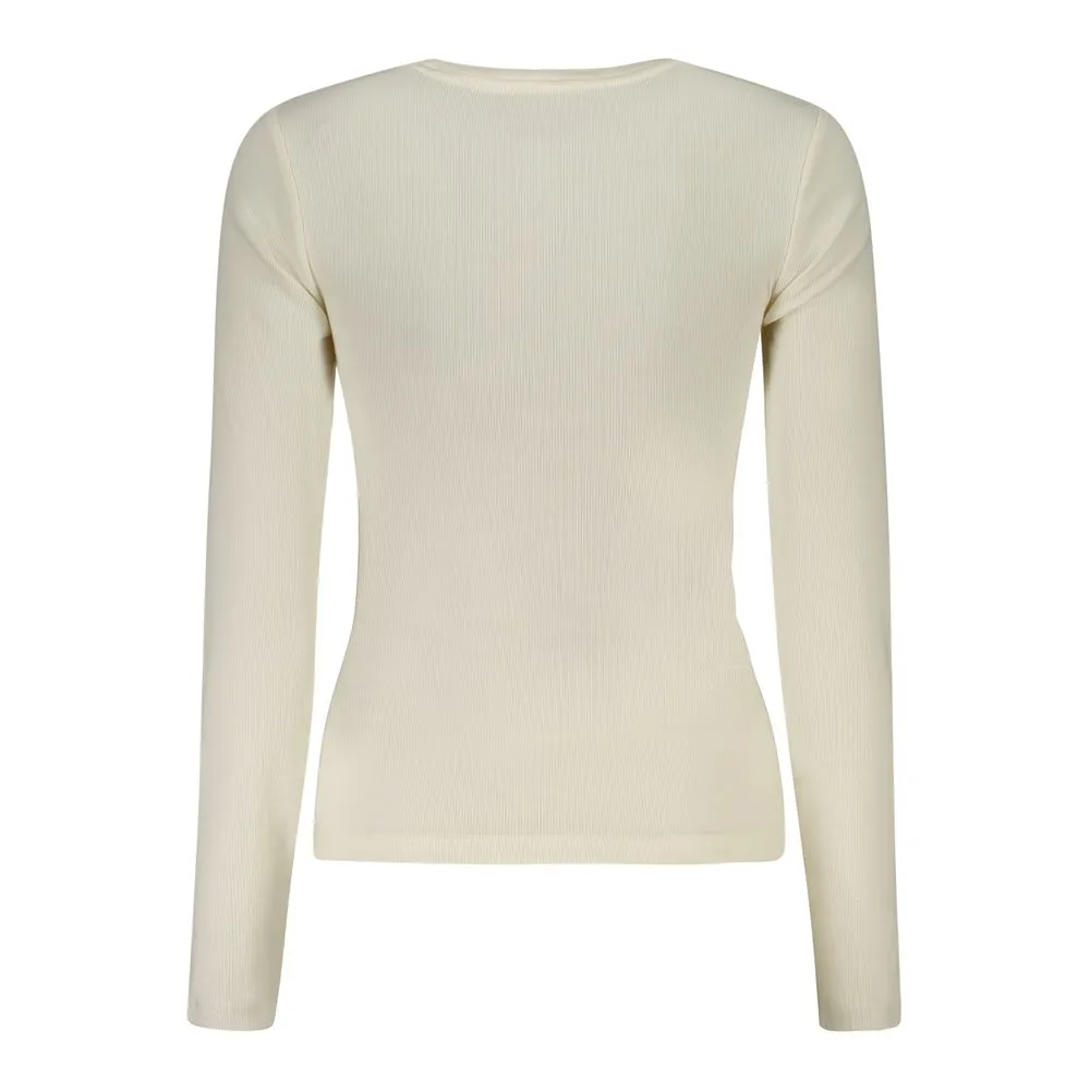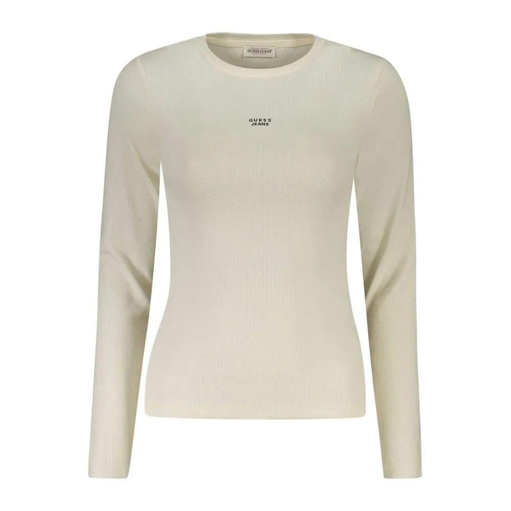 Embrace the epitome of contemporary chic with this pristine white tee by Guess Jeans. Made for those who love a blend of comfort and style, it features an elegant wide neckline and the iconic Guess embroidery logo that speaks volumes of your fashion-forward sensibilities. Ideal for day-to-evening transitions, it’s a versatile addition to any wardrobe.