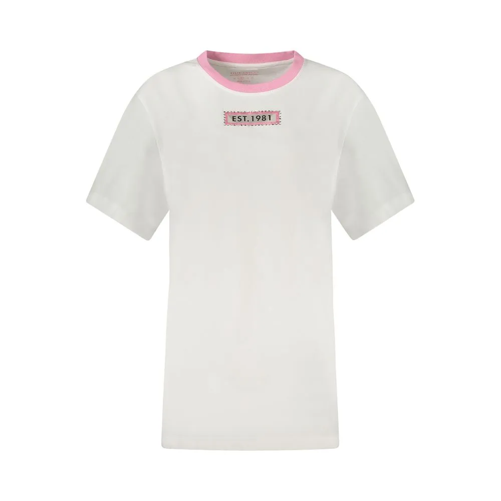 Unveil your daring style and make a bold statement with this Guess Jeans masterpiece. This white maxi t-shirt is embellished with contrasting details that demand attention—sparkling rhinestones and unique applications spell out the Guess legacy. Crafted from organic cotton for a luxe, eco-conscious touch, it’s perfect for those who set trends rather than follow them. Feel the confidence in every thread.