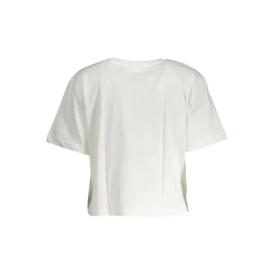 Dive into the vibrant world of Desigual with this avant-garde white tee that’s anything but basic. Adorned with Desigual’s signature bold print and eye-catching contrasting details, it’s the epitome of a style statement. The round neckline and short sleeves give it a classic cut, making it an effortlessly chic choice to elevate your everyday ensemble. Make a statement while exuding comfort and panache with this must-have piece from Desigual.