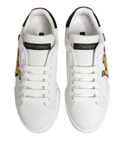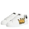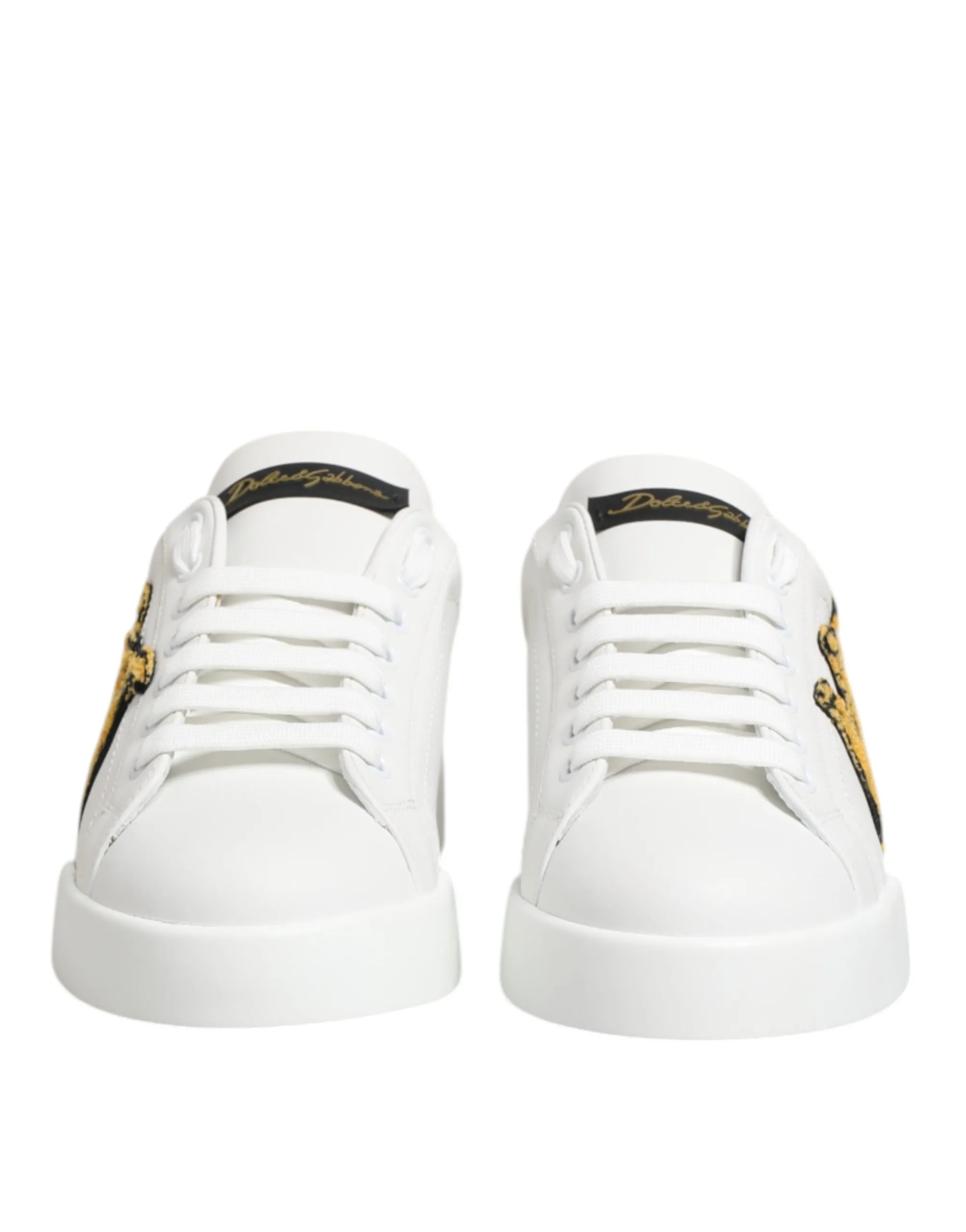 Gorgeous brand new, 100% Authentic Dolce & Gabbana Portofino white leather sneakers shoes with crown patch.