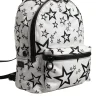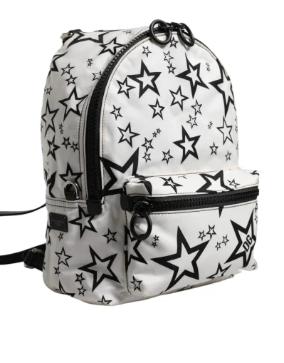 White DG Stars Print Nylon Travel Backpack Bag