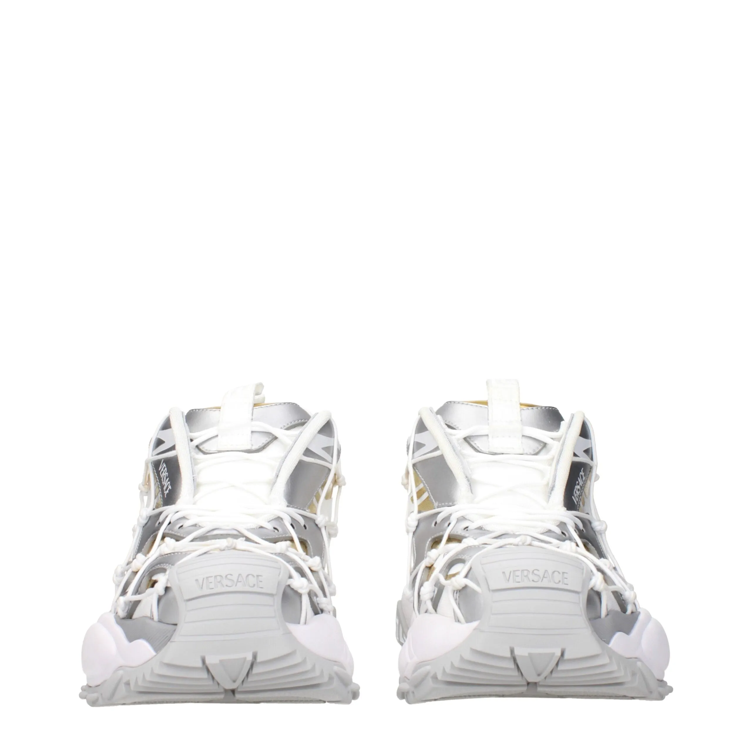 The product with MPN 10163801A115096W690 and code F84049 fabric in white is a sneakers designed by Versace. It has features like front logo, side logo, back logo.