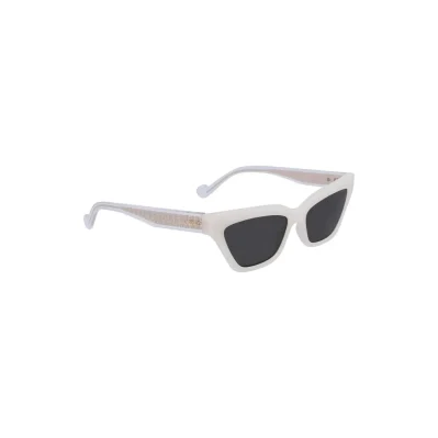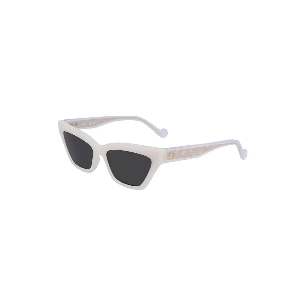 Capture the essence of contemporary glam with these Liu Jo sunglasses. A bold statement under the sun, these shades accentuate every look with their pristine white frame and contrast detailing. Designed with a sleek, rectangular gray lens that epitomizes modern chic, they exemplify sophistication and style. Perfect for fashion-forward individuals ready to shine.