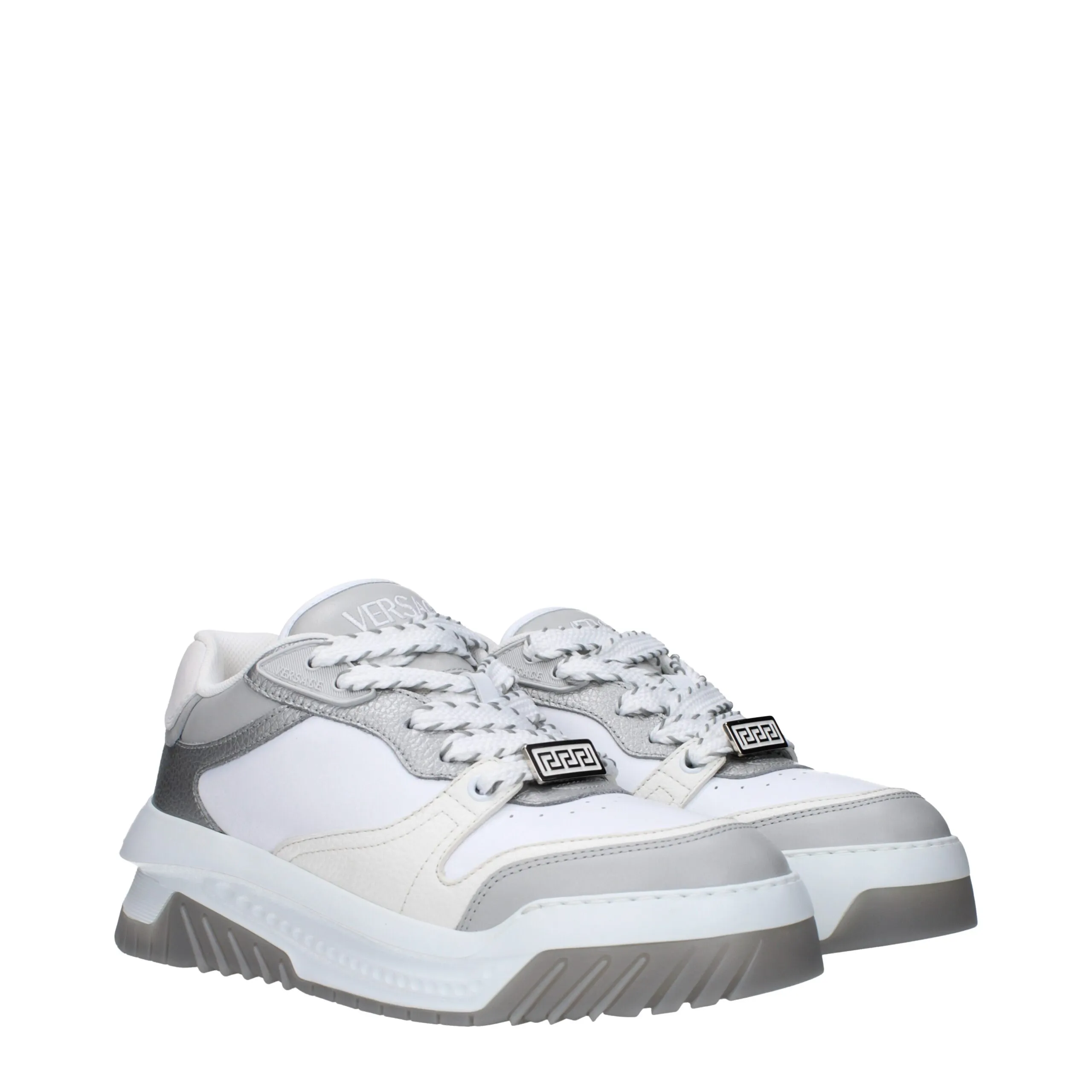 The product with MPN 10154371A109252E10P and code F82536 leather in white is a sneakers designed by Versace. It has features like front logo, side logo, back logo.