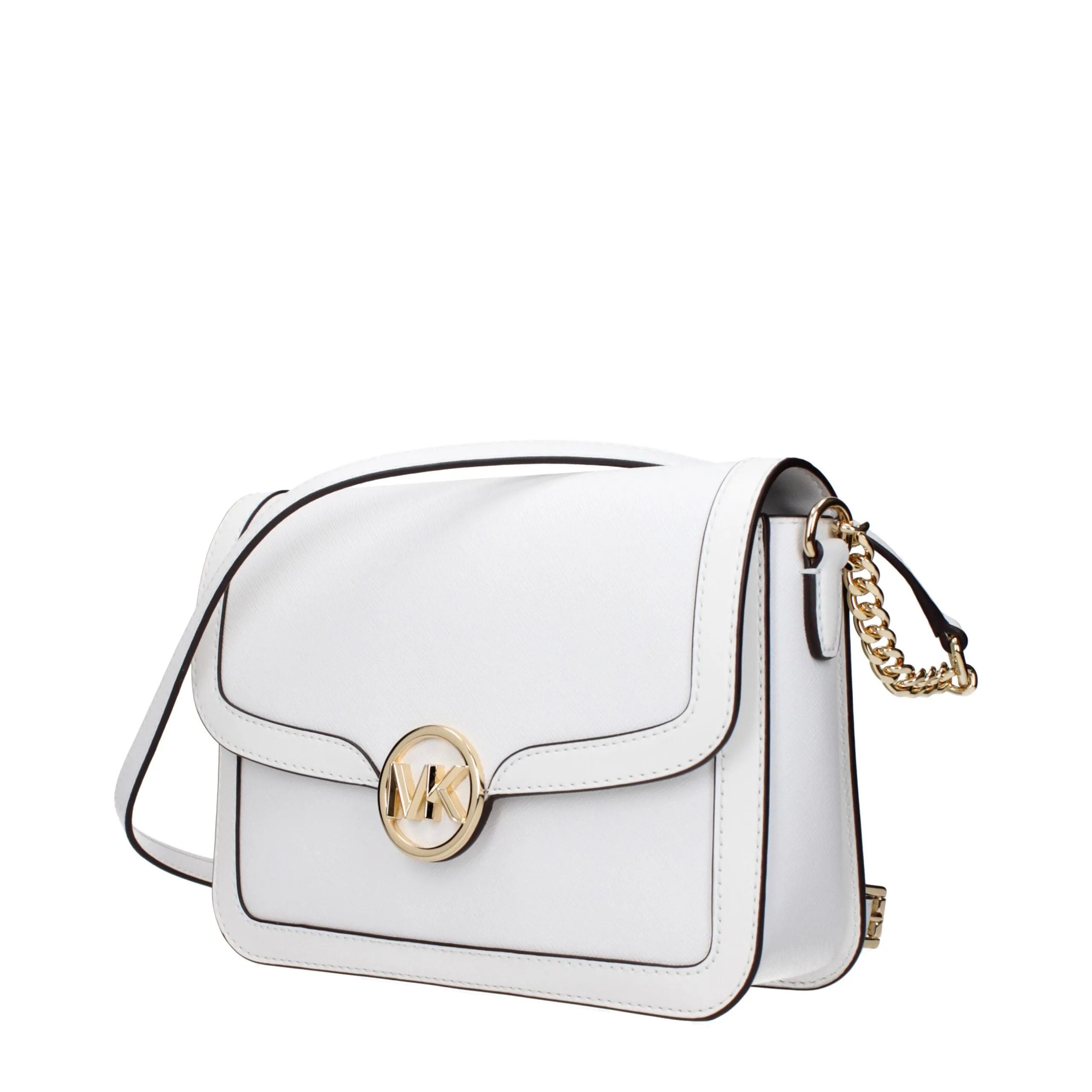 The product with MPN 35S4G9GM8LOPTICWHITE and code F83414 leather in white is a crossbody bags designed by Michael Kors. It has features like front logo, adjustable shoulder.