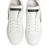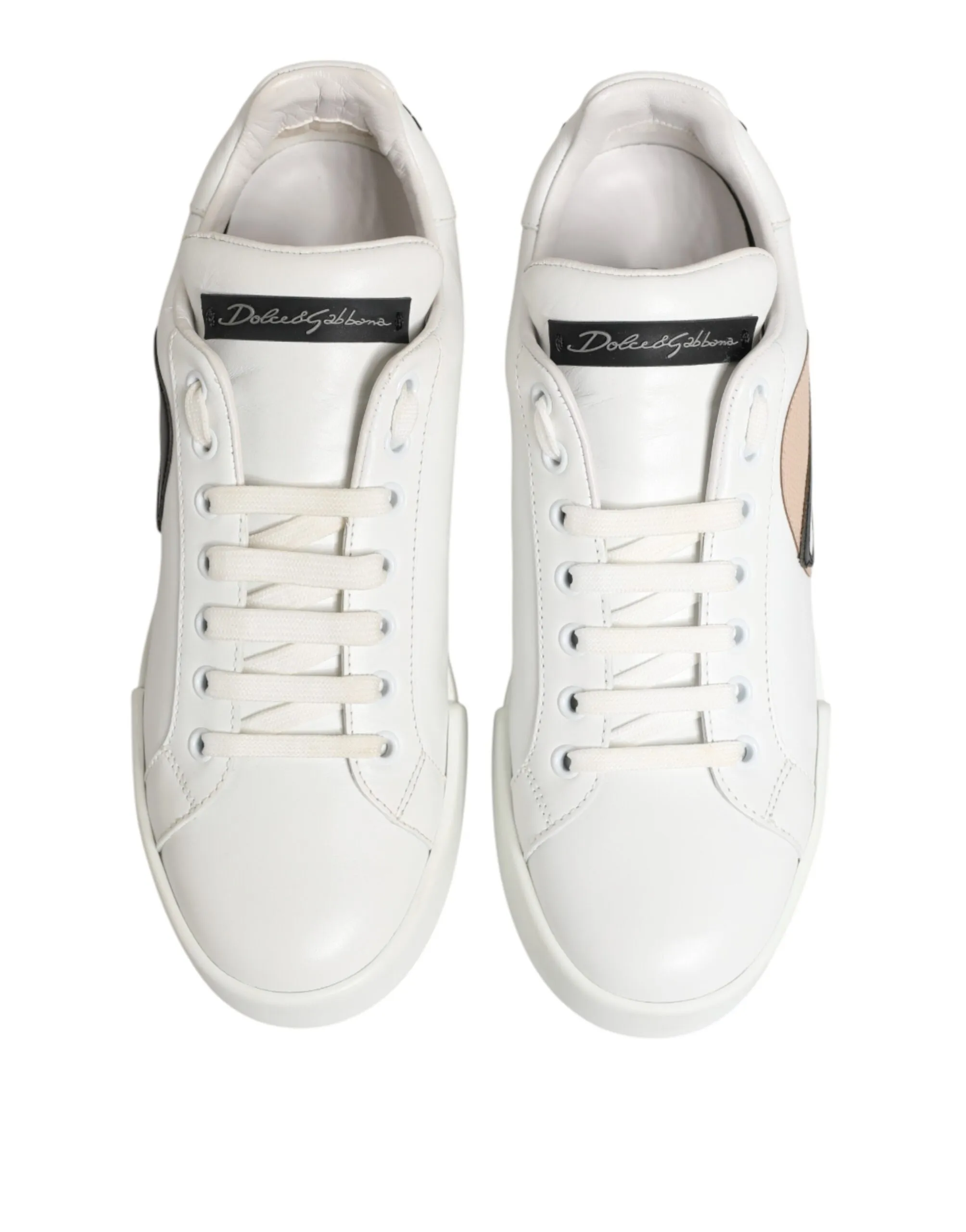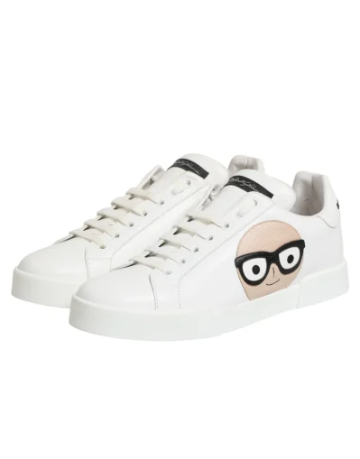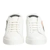 sneakers embody playful luxury and Italian craftsmanship. Made from premium white leather, they feature the brand’s iconic #DGFamily motif for a distinctive and expressive look. The classic low-top silhouette offers comfort and versatility, while subtle logo detailing adds a refined finish. Perfect for adding personality and sophistication to casual ensembles.