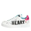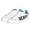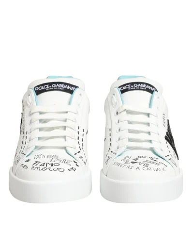 sneakers make a bold street-style statement with their graffiti-inspired design. Crafted from premium white leather, they feature colorful hand-drawn-style prints and logo details throughout. The low-top silhouette is complemented by a lace-up front, padded collar, and durable rubber sole for all-day comfort. A vibrant expression of urban luxury and contemporary flair.