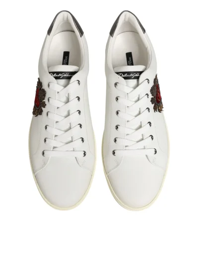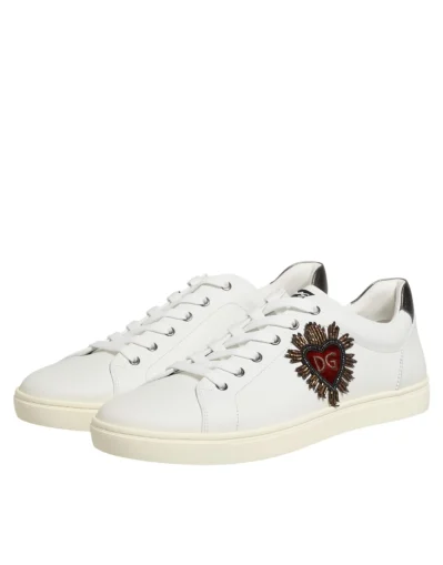 White Leather Heart Embellished Sneakers Shoes