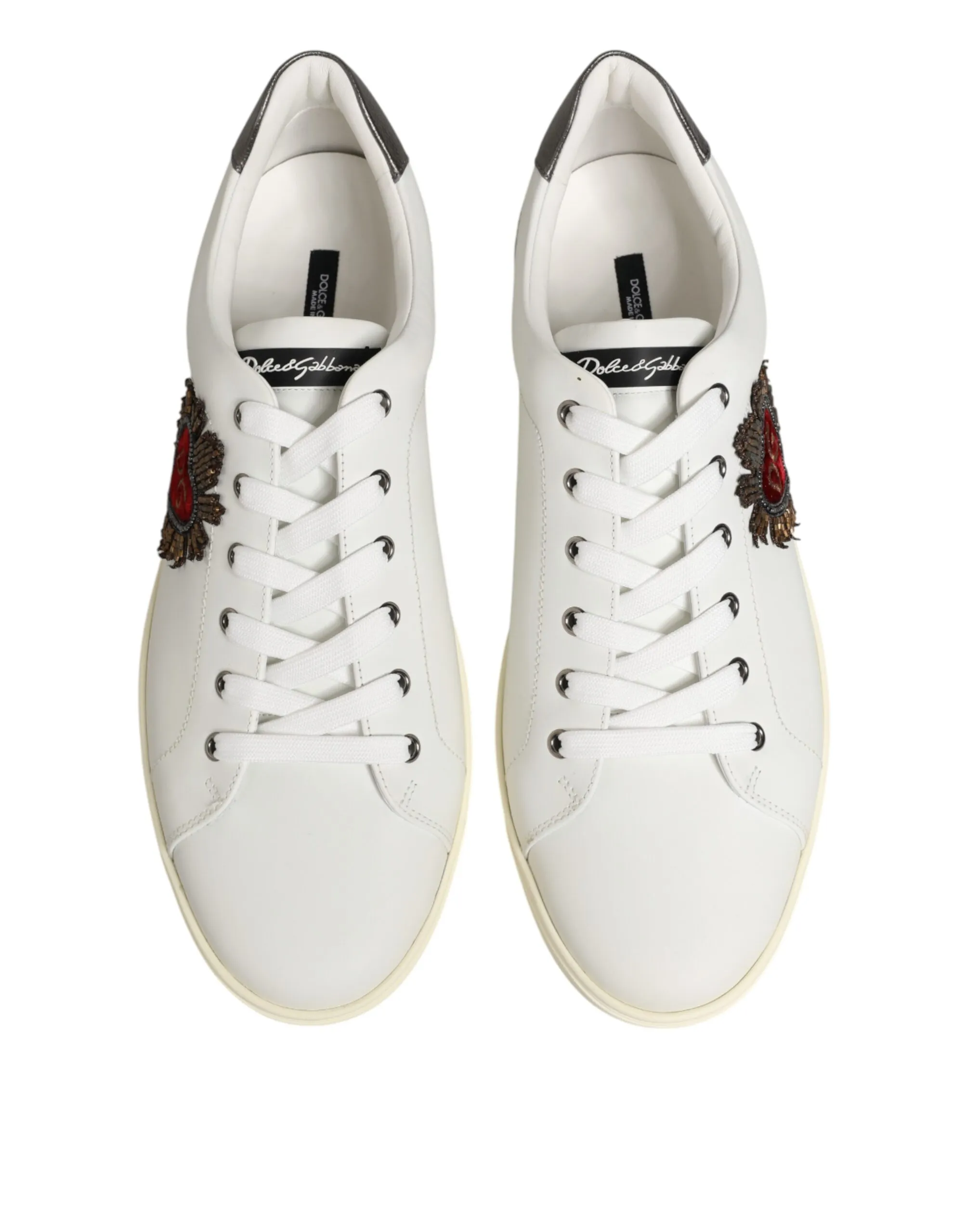White Leather Heart Embellished Sneakers Shoes Original price was: $719.00.Current price is: $519.00.