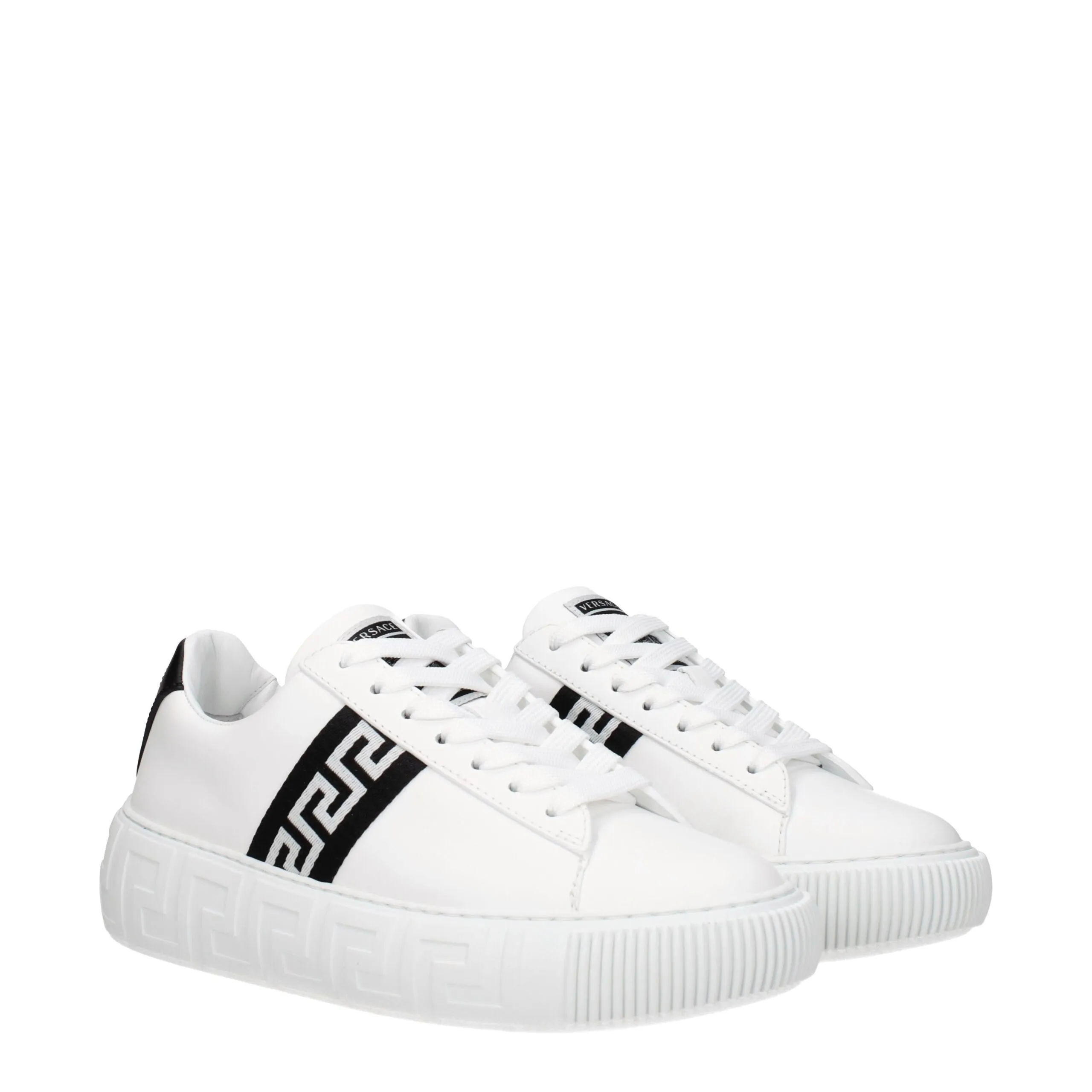 The product with MPN 10041841A007752W020 and code F78138 leather in white is a sneakers designed by Versace. It has features like front logo.