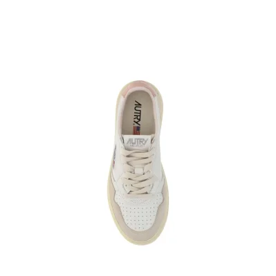 Calfskin Leather Sneakers by Autry, round and perforated toe, frontal... Read More