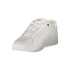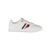 Elevate your sneaker game with the impeccable design from Tommy Hilfiger. Boasting a sleek white palette, these sports shoes with laces feature a removable footbed for customized comfort. The iconic Tommy Hilfiger logo and standout print manifest a bold statement with every step. Perfect for the fashion-forward individual ready to leave a mark.