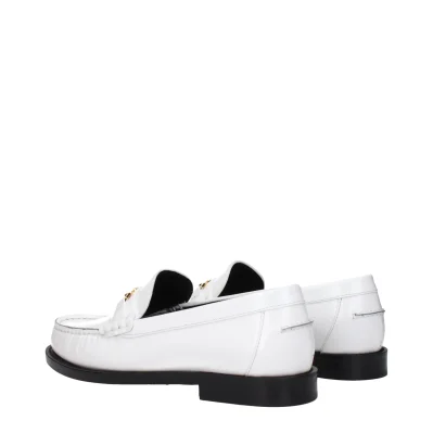 The product with MPN 10121231A087731W00V and code F82515 leather in white is a loafers designed by Versace. It has features like front detail, front logo.