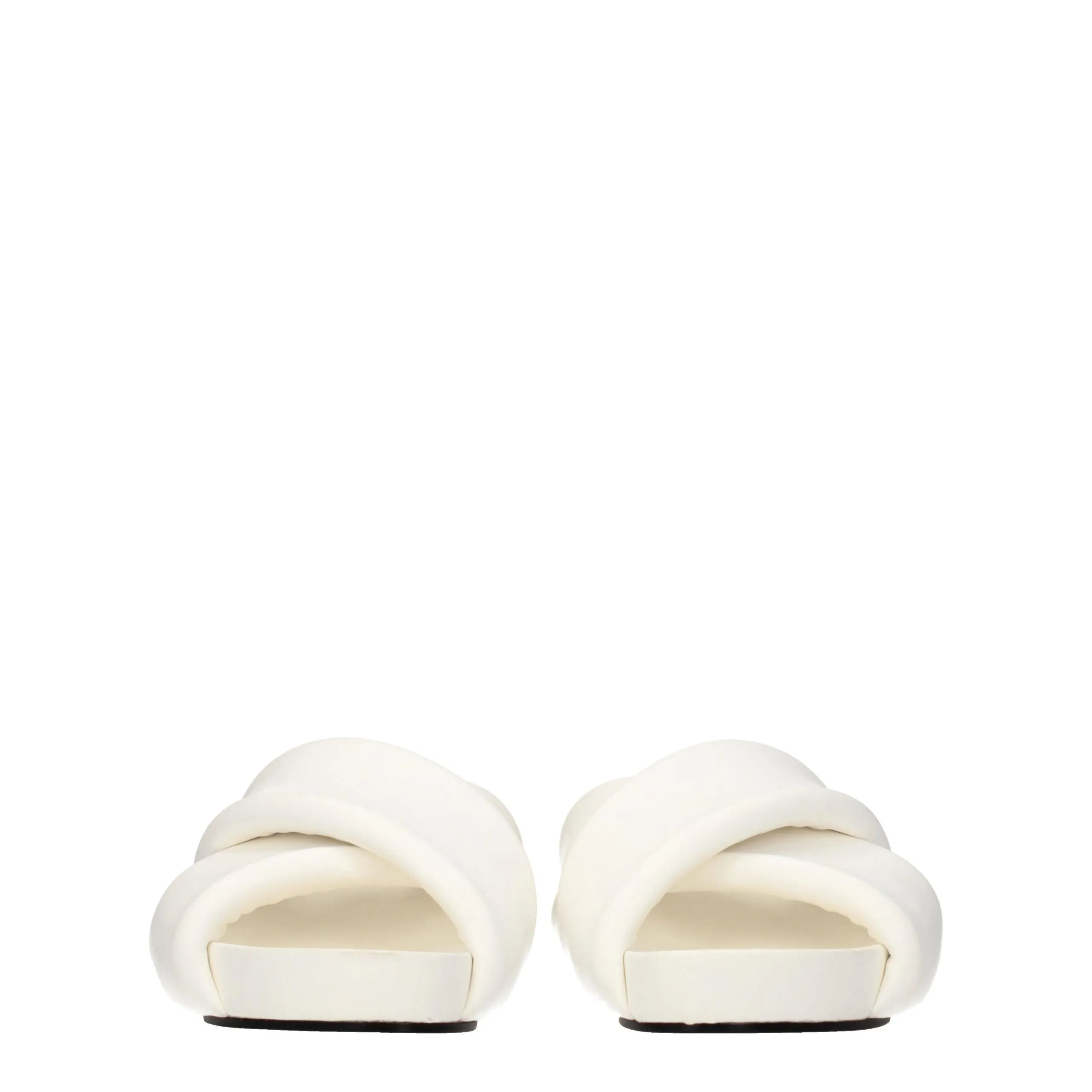 The product with MPN J15WP0043P5057100 and code F77266 leather in white is a slippers and clogs designed by Jil Sander. It has features like vintage effect.