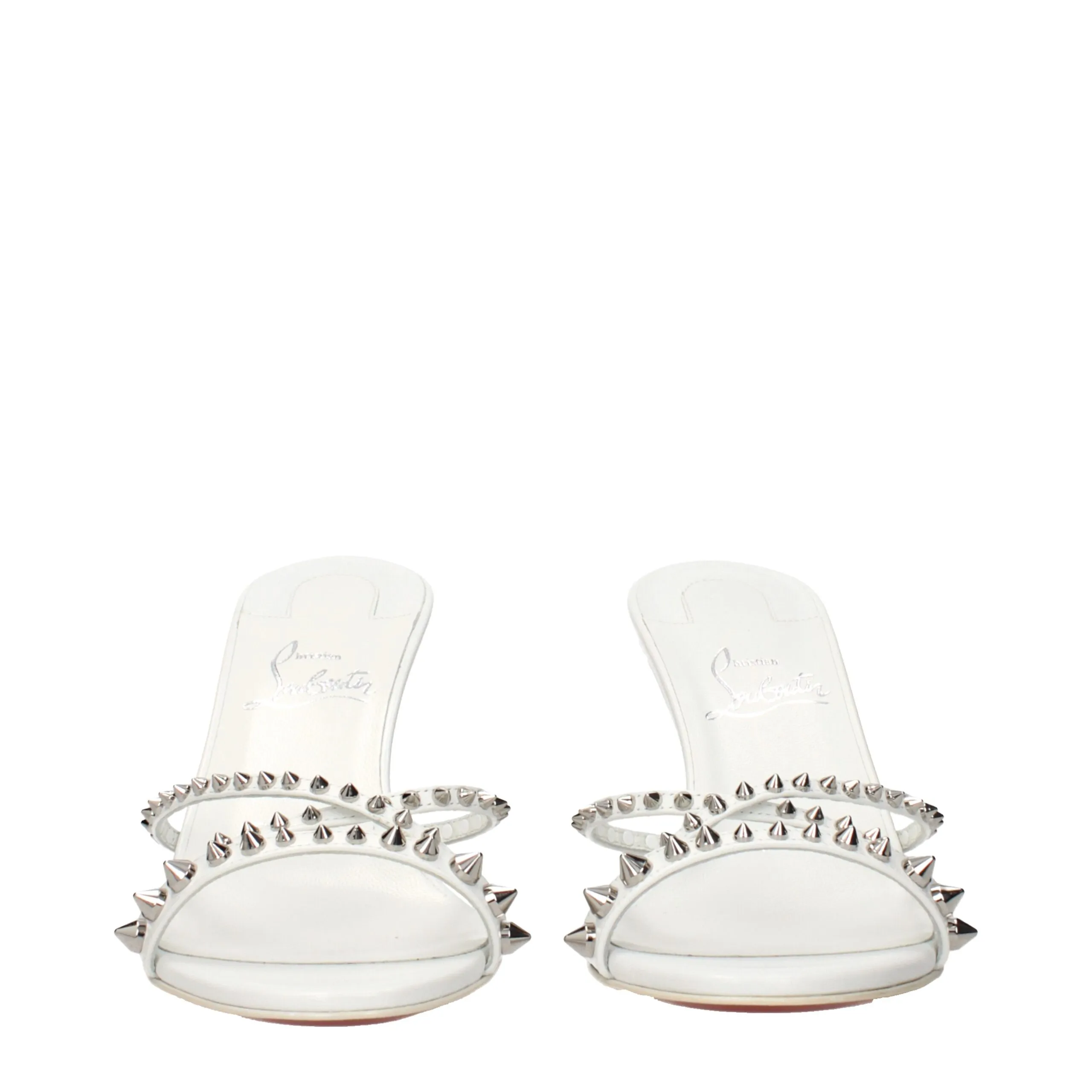 The product with MPN 3240181N302 and code F85405 leather in white is a sandals designed by Louboutin. It has features like studs.