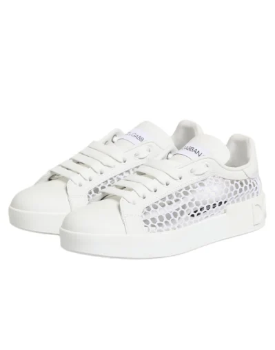 sneakers offer a sleek fusion of modern design and comfort. Crafted from premium white leather with breathable mesh inserts, they provide a lightweight and sporty feel. The low-top silhouette ensures easy wear, while subtle logo details add a touch of luxury. Perfect for casual outings or pairing with contemporary streetwear looks.