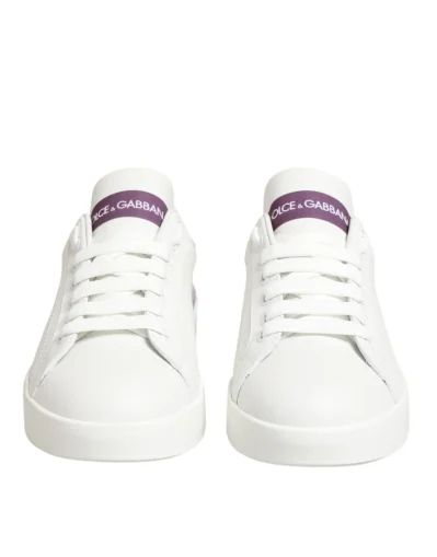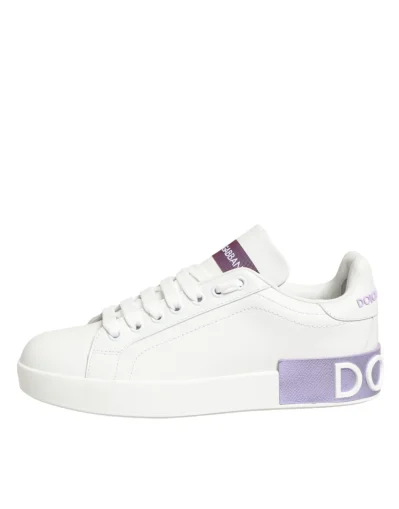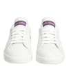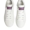 sneakers blend sporty elegance with a bold color touch. Crafted from smooth white leather with striking purple accents, they feature a classic low-top silhouette for everyday comfort and style. The design is finished with subtle logo details, offering a refined yet contemporary look — perfect for casual wear or elevating modern street outfits.