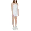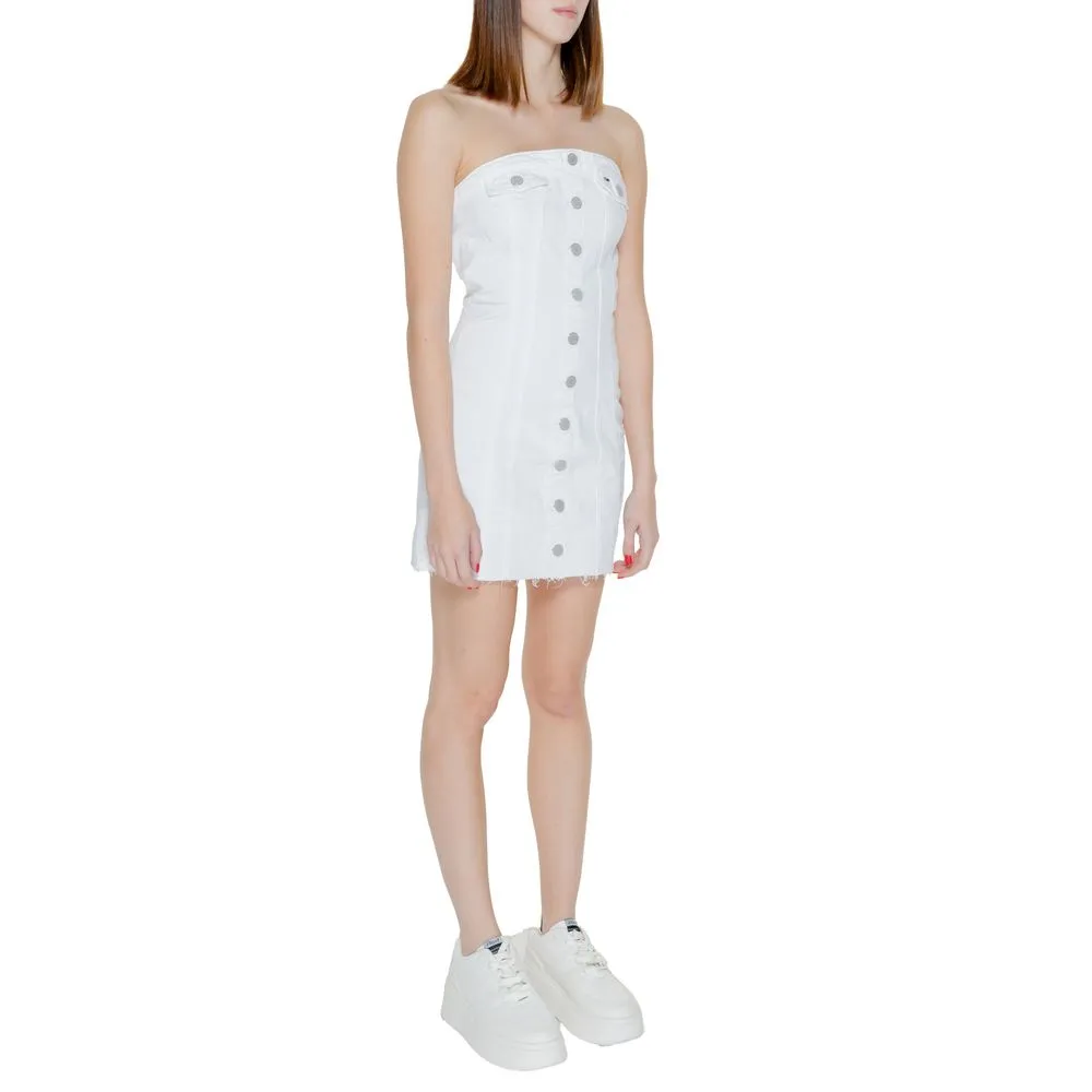 The Tommy Hilfiger Jeans MINI BUSTIER DW0DW18118 women’s short dress is the ideal choice for those seeking a fresh and contemporary style. Made from a blend of regenerated cotton, traditional cotton, recycled cotton, and elastane, this dress ensures comfort, sustainability, and a snug fit that enhances the silhouette. The strapless bustier design features a front row of metallic buttons and refined vertical ribbing for a modern, on-trend look. The raw-cut hem adds a casual, youthful touch, while Tommy Hilfiger’s renowned quality guarantees durability and attention to detail. Perfect for spring and summer, it’s ideal for casual occasions, aperitifs, or evenings out with friends.