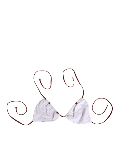 Gorgeous brand new, 100% Authentic Dolce & Gabbana bikini top, featuring a playful red polka dot pattern adorned with vibrant floral prints and a butterfly motif. Designed in a classic triangle style with burgundy adjustable tie straps, it offers both comfort and elegance. Crafted in Italy from premium materials, this piece reflects Dolce & Gabbana’s signature blend of luxury and sophistication.