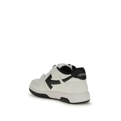 Leather Out Of Office Sneakers by Off-White feature a lace-up front closure and a round toe. The side panels are decorated with the brand’s iconic Arrow logo, while the flat sole ensures comfort. A distinctive detail is the applied zipper tie tag on the front, accompanied by the contrasting logo on the heel, giving it an urban and contemporary feel.