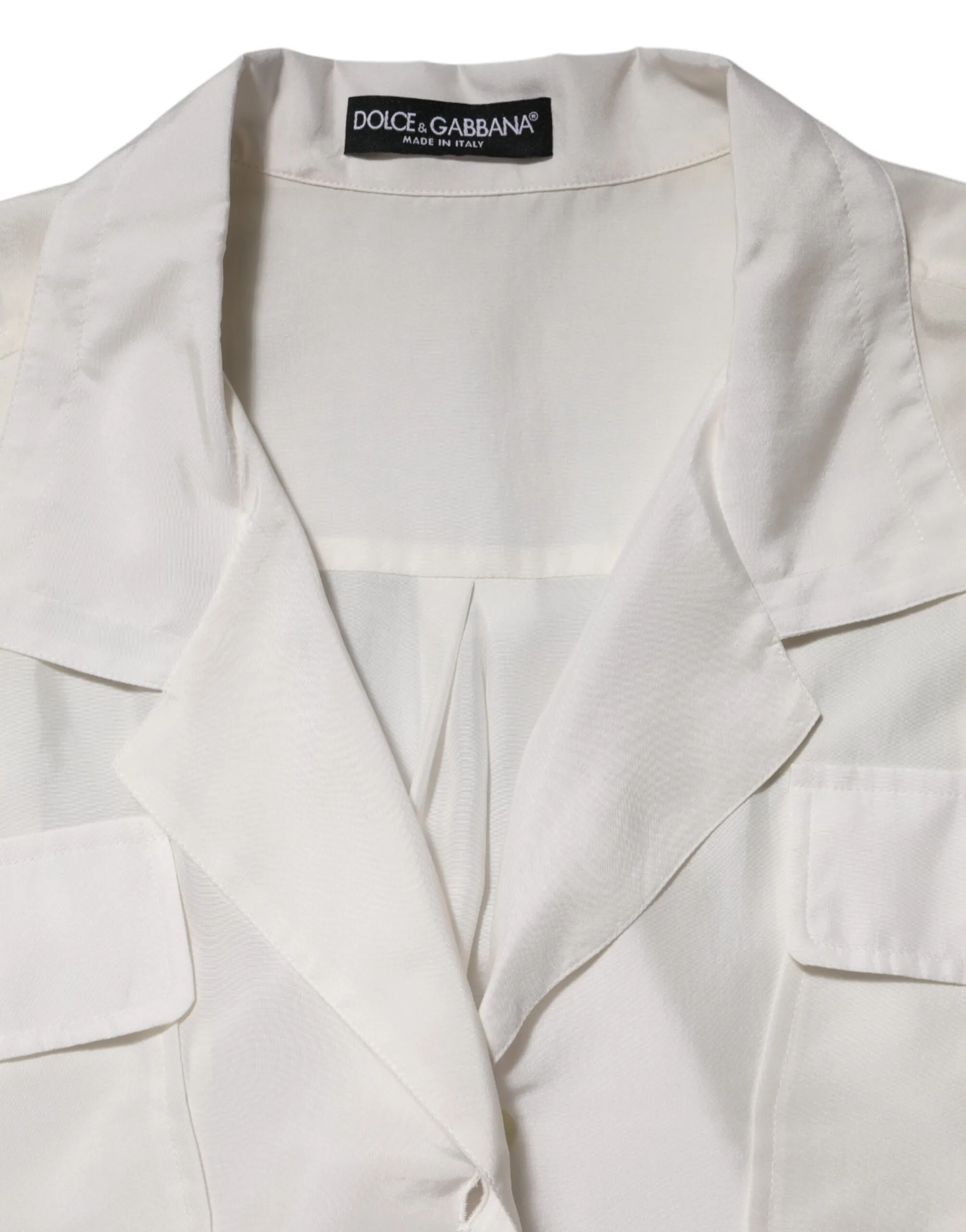 Gorgeous brand new with tags, 100% Authentic DOLCE & GABBANA women’s silk shirt featuring a lightweight design with dual front flap pockets, button closure, and 3/4 sleeves. Perfect for an elegant, versatile look.