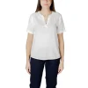 Discover the QR Splitneck short-sleeve blouse by Street One, made from 100% viscose to ensure a fresh and lightweight feel. This blouse features an elegant design with a V-neckline and rolled-up sleeves, making it perfect for a casual yet polished look. Ideal for summer days, it can be easily paired with jeans or light trousers for a versatile outfit suitable for both work and leisure. Its viscose composition guarantees excellent breathability, making it a must-have in your wardrobe.