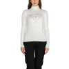 The Guess PIPER TRIANGLE LOGO TN LS women’s turtleneck sweater is a knitwear piece that combines style and comfort, perfect for those who want an elegant and contemporary look. Made from a blend of 82% viscose, 16% polyamide, and 2% elastane/lycra, this turtleneck ensures softness, stretch, and a comfortable fit that hugs the silhouette. The high neck design provides warmth and protection during colder seasons, while the iconic Guess triangle logo embellished with sparkling details adds a distinctive and glamorous touch. Ideal to pair with both classic trousers and skirts for a versatile outfit, it’s the perfect choice for those seeking a refined garment for any occasion.