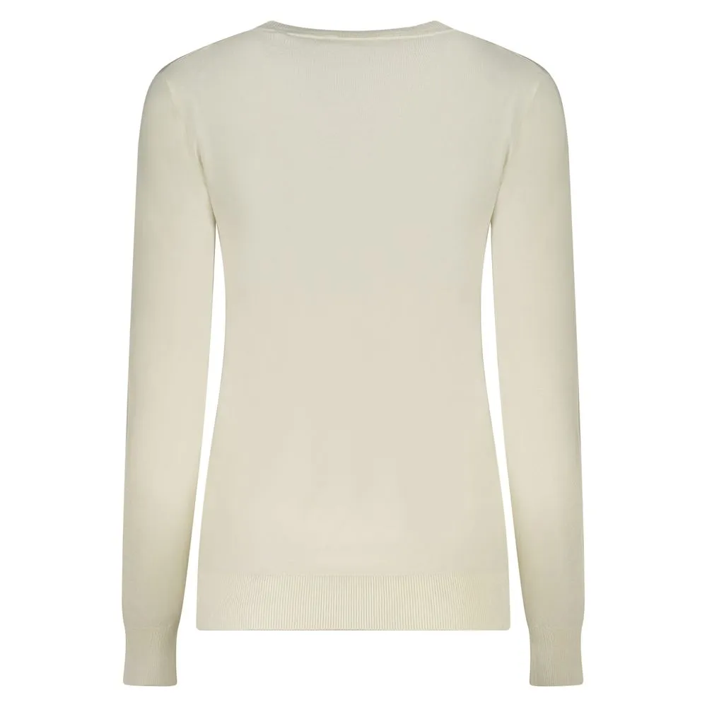 Unleash your inner style icon with the Guess Jeans showstopper—this dazzling white long-sleeved T-shirt is your next wardrobe centerpiece. Crafted for those who dare to stand out, it features delicate embroidery along with sparkly rhinestone applications that effortlessly shout luxury. The flattering V-neck adds a touch of femininity, perfect for versatility and statement-making moments. Feel the unique blend of comfort and sophistication that only Guess Jeans can offer.